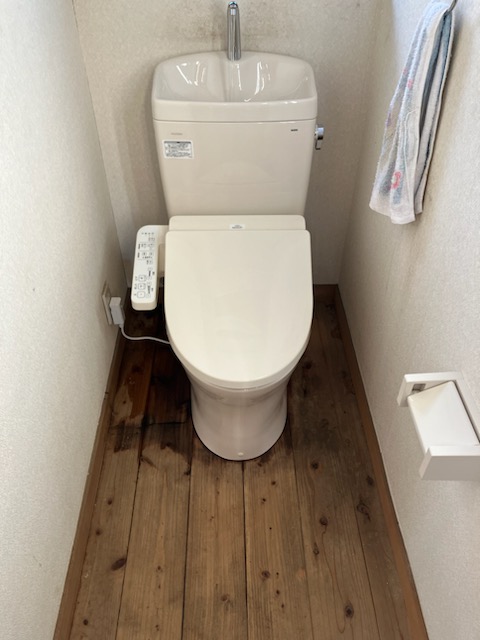 トイレ フローリングにクッションフロアを上貼りして、トイレを取り替えました。