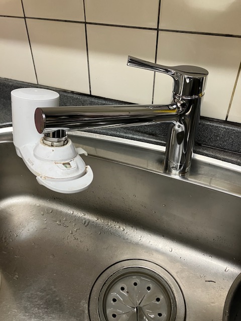 水栓 既存の水栓に設置されていた浄水器を付け替えました。