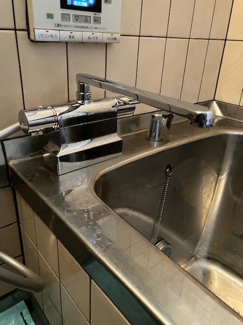 水栓 温度調整が簡単なサーモスタットタイプです。