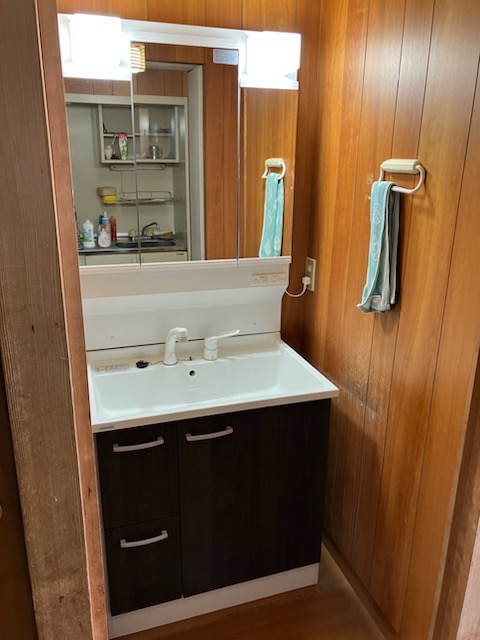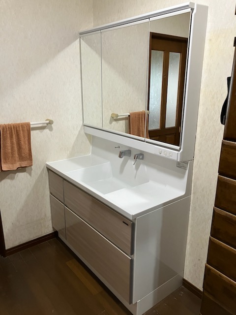 洗面化粧台 化粧鏡は無しで、洗面台のみの取り替えでした。
