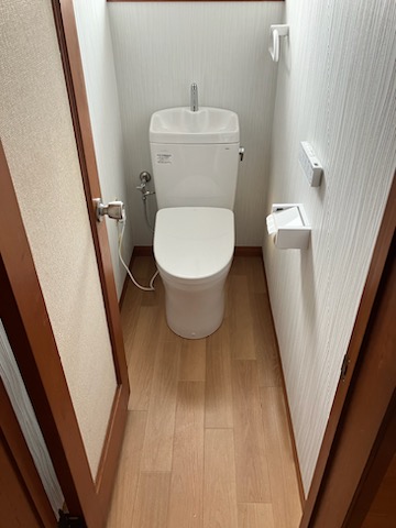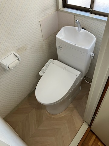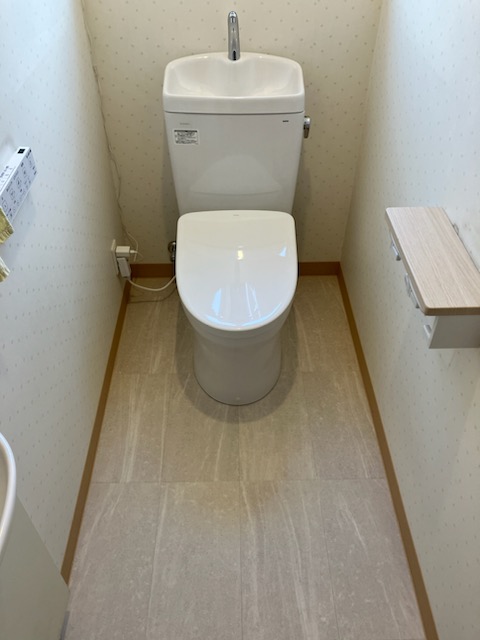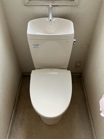 トイレ 既存の便座を流用して、タンクと便器のみ取り替えました。
